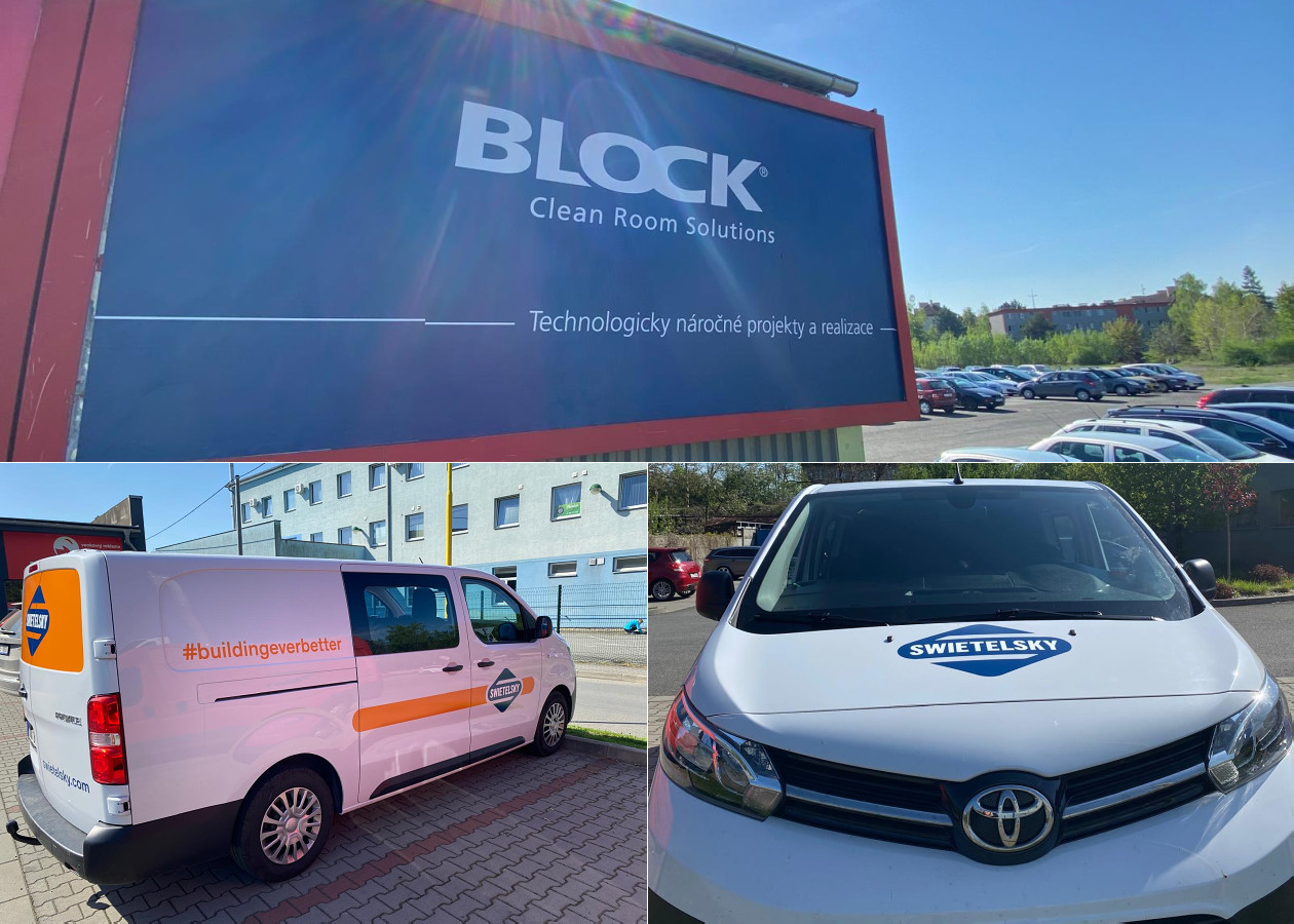 Instalované reklamy pro BLOCK, polep firemního vozu SWIETELSKY Ukázka