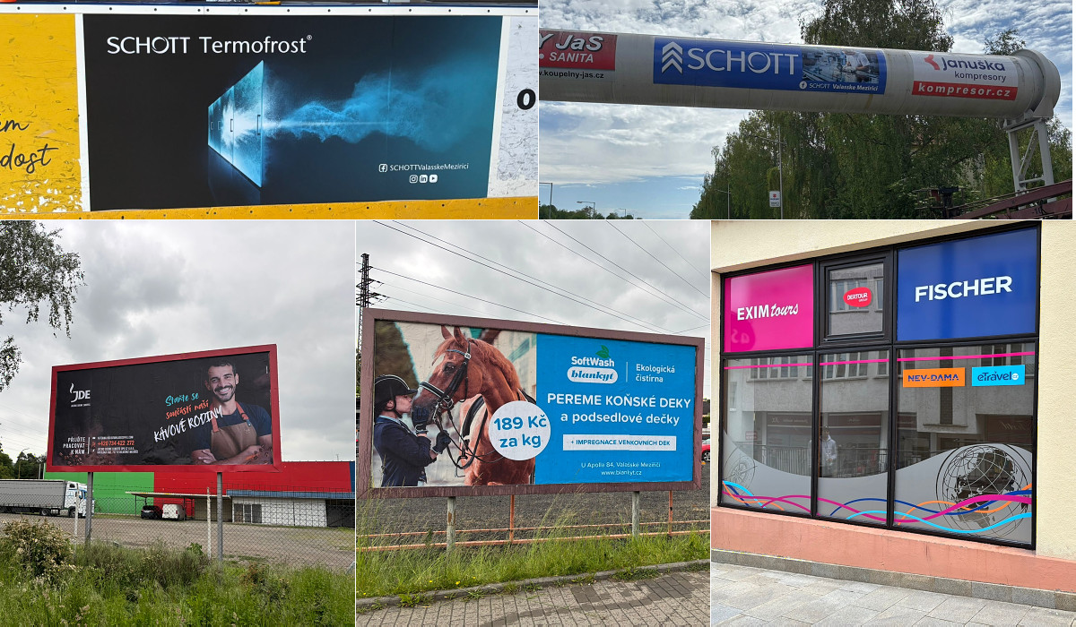 » Instalované reklamy pro SWHG, BLOCK CRS a SCHOTT ve Valašském Meziříčí.