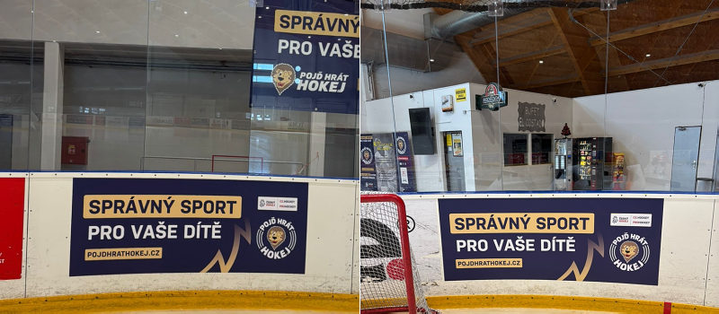 » Instalované reklamy pro pojdhrathokej.cz na stadionu ve Valašském Meziříčí.