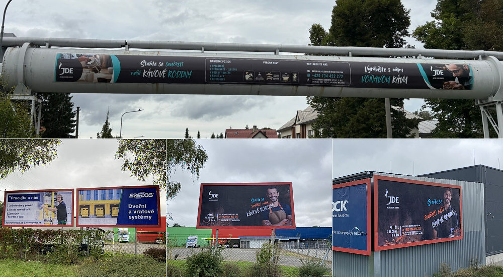 » Instalované reklamy pro Jacobs Douwe Egberts, SPEDOS ve Valašském Meziříčí.